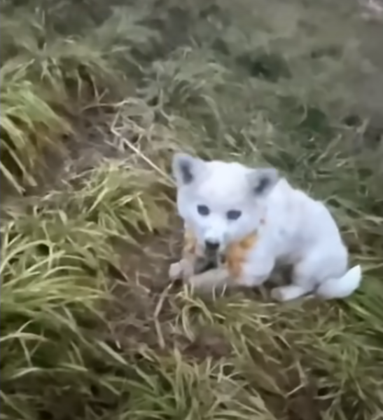 The tiny creature was in such dire straits that it resorted to eating grass. Witnessing this, the rescuers were overcome with empathy and knew they had to act swiftly, especially as the chill of impending rain loomed in the air. Their initial attempt to coax the puppy into their car took an unexpected turn when the little one gestured towards another direction, urging them to follow.