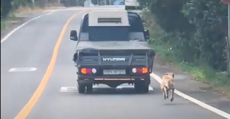 Mother Dog Runs After Truck With Her Puppies When They’re Whisked Away